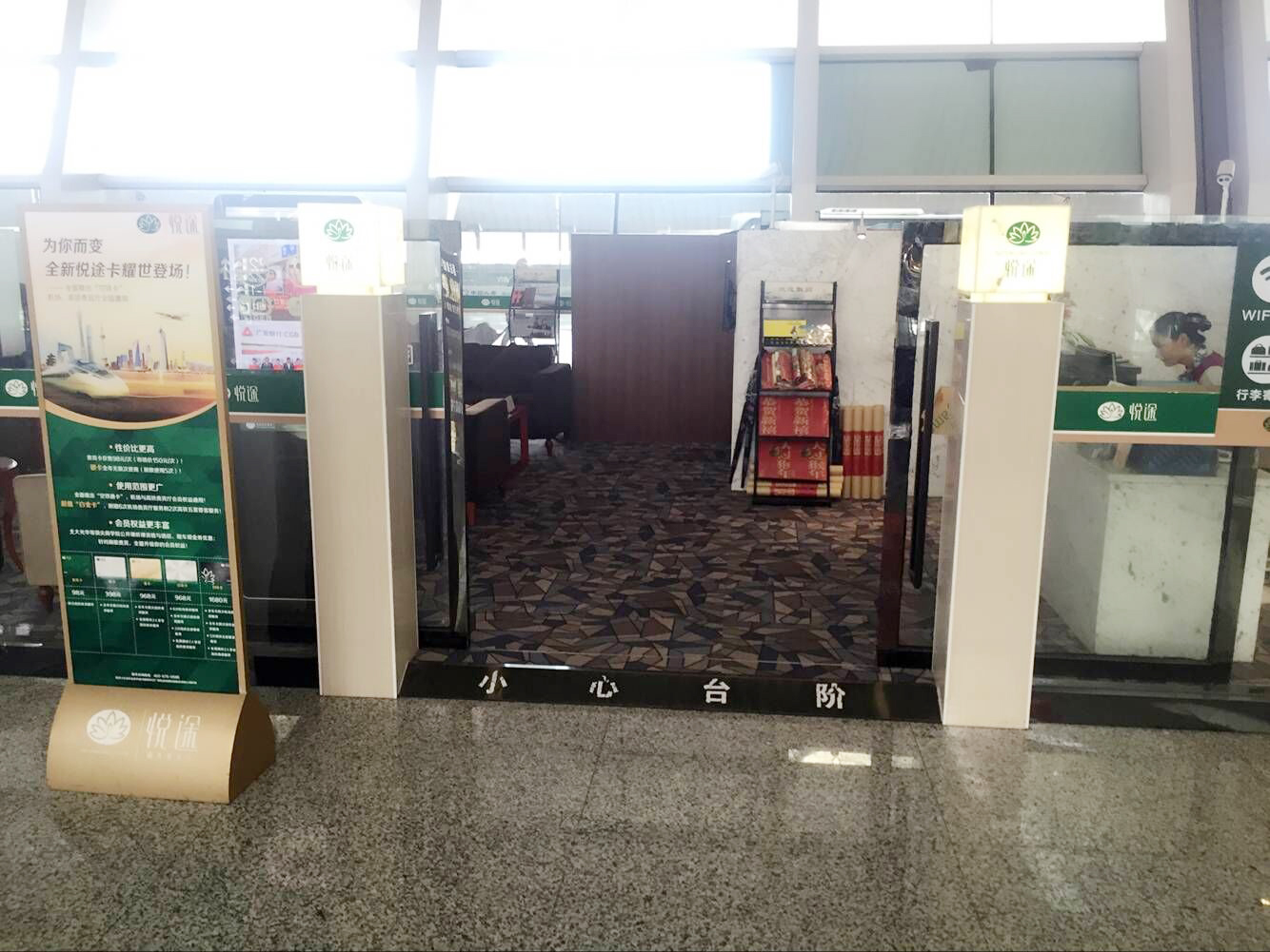 二楼出发层北2进站口左方,检票口A22-23后方“悦途”(厅)